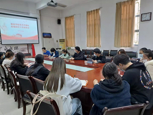 学工秘书王旭主持,学院党委组织员邓亮、各学生党支部书记及全体队员参加。