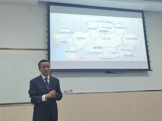 杨雷副教授在教室SD110为师生做了《中国与哈萨克斯坦:丝路上的命运共同体》的主题报告,讲座由黄达远院长主持,院党委书记魏民安同志介绍了杨雷副教授的工作情况。部分学工干部及部分教师与2019级俄语专业、哈萨克语专业全体同学共同参与此次讲座。