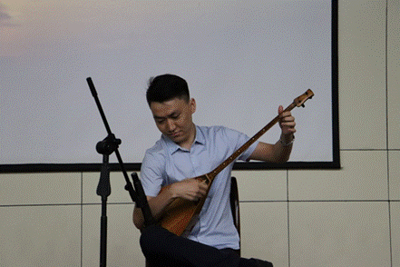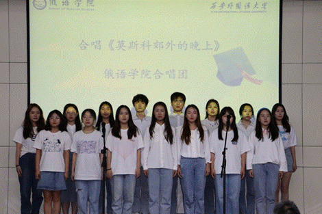 合唱团演唱的《莫斯科郊外的晚上》开场,教师合唱《喀秋莎》、俄语诗歌朗诵《Жди меня》、冬不拉独奏、机械舞表演等节目精彩纷呈,引得学生连连叫好,最后学生代表演唱的《我和我的祖国》、全体师生合唱的《歌唱祖国》将晚会推向高潮。