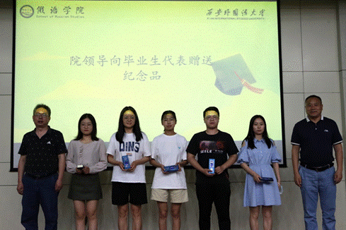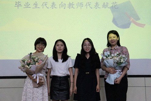 临近晚会尾声,教师与毕业生互送礼物,互道祝福,2022届毕业生代表先向教师代表献上鲜花,随后学院领导向毕业生代表赠送纪念品留念。
