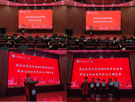 典礼上,马晓迪宣读2023届本科毕业生名单;邢鸿岳宣读2023届硕士研究生毕业生名单;黄达远宣读2023届校级优秀毕业生和优秀毕业生干部名单。在阵阵掌声中,院领导为2023届校级优秀毕业生和优秀毕业生干部代表颁发证书和纪念品。