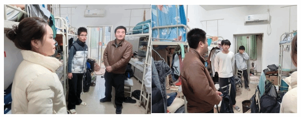 在毕业生宿舍,邢鸿岳询问了同学们的就业动态,了解了大家的就业意愿,敦促大家树立正确就业观,积极就业,同时及时签订相关协议,保障自身权益。毕业班辅导员田腾对同学们的就业情况进行了分析,提出了指导和建议,希望同学们抓住机会,多主动出击,早日找到合适的工作。(文/图:朱轩皓;审核:邢鸿岳)