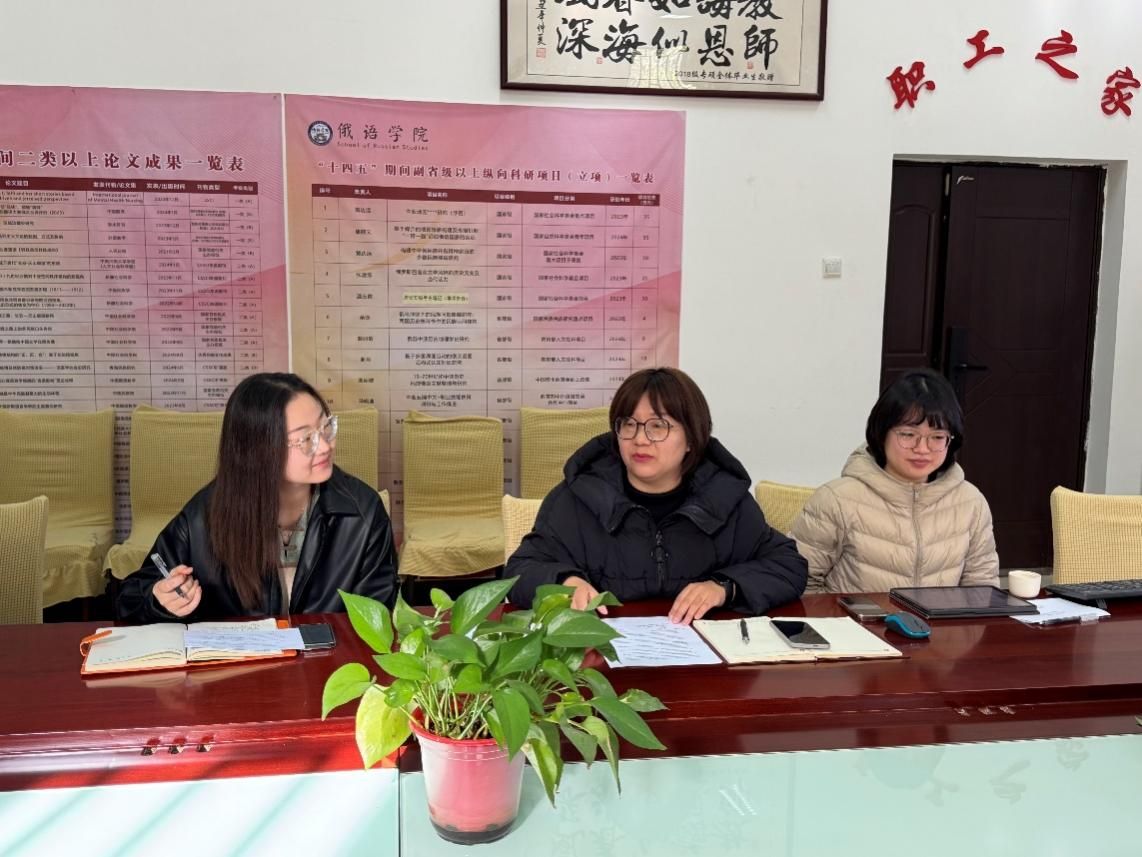 接着,第一、第二支部的党员代表用中俄双语分享了2025年全国两会中的重要金句,同时结合这些金句分享了自己的感受。一支部党员代表张楚晗关注国家经济发展与生态建设,结合"经济长期向好的基本趋势没有改变也不会改变"等金句,深入解读我国深化改革、推动绿色低碳发展等战略部署;二支部党员代表张壮彪的发言聚焦国际视野,以“文明对话要各美其美、美美与共”等金句为切入点,分析“一带一路”倡议下中俄文明互鉴的实践成果。