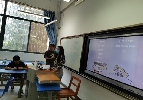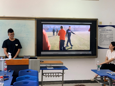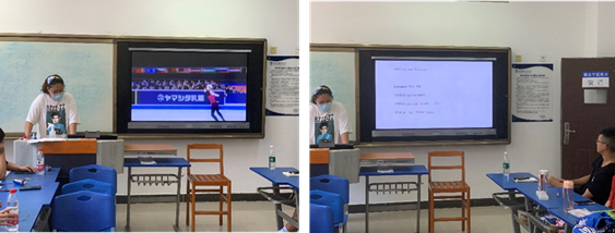 随后,由小组成员张龙洲和徐海杰共同为我们讲解了关于спорт的语法知识,他们以多种连线填空等方式为同学们在复习的基础上,拓展了运动方面的实时新闻与知识(意大利夺得了欧洲杯冠军)等等,同学们也积极互动,在台下共同开动脑筋想问题,相信大家都有不同的收获。