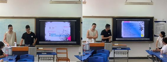 随后由第一名组员苏雯睿,围绕小组主题《运动》为我们带来了与之相关的词组学习,采用击鼓传花这种小游戏等多形式的教学,相信同学们肯定收获颇深,或许在下一个小组的展示中就能看到更多类似的设计。