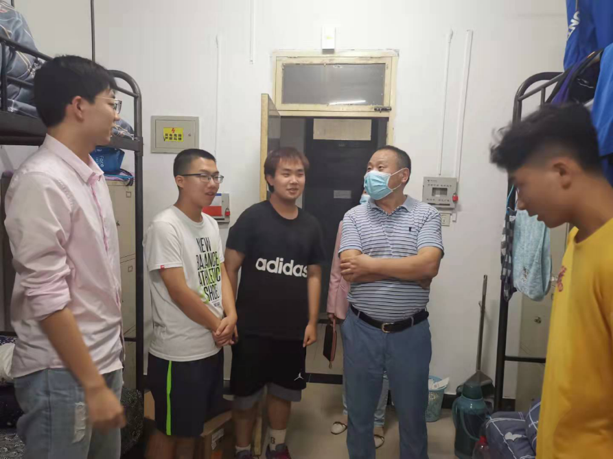 9月7日下午14:30,党委书记魏民安老师、副院长徐莉老师、2021级辅导员邓亮老师一同来到新生宿舍看望新生,各位老师关切的询问新生住宿及生活状况,强调了新生安全、疫情防控等问题。新生纷纷表示,感谢学院老师及学长学姐的关心和关爱,自己一定会努力学习,不辜负家人和老师对自己的期望。