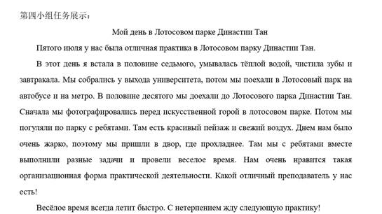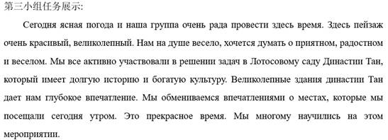 最一项任务(任务4)以 《Мой день в лотосовом парке Династии Тан》 为题,撰写一篇短文。借此记录此次游玩的所感、所想、所悟。