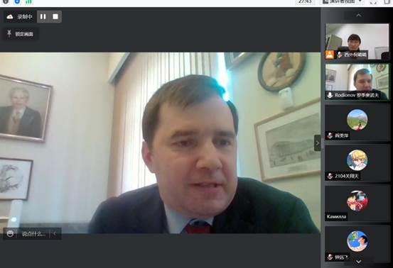 在梳理完俄罗斯汉语教学历史后,罗季奥诺夫教授还介绍了俄罗斯圣彼得堡国立大学的中文教学现状。圣彼得堡国立大学汉语教学历史悠久,始于1855年,其东方系现有汉学家45位,汉学专业大学生150多名,设立34个与中国相关的方向与专业,学校还设立了四门网络汉语课程,有近十万社会人士进修了此课程,获得一致好评。他认为,中国文化深刻影响着俄罗斯的社会生活,汉语地位不断在交流中上升,在俄罗斯高校和社会中都出现“汉语学习热”。