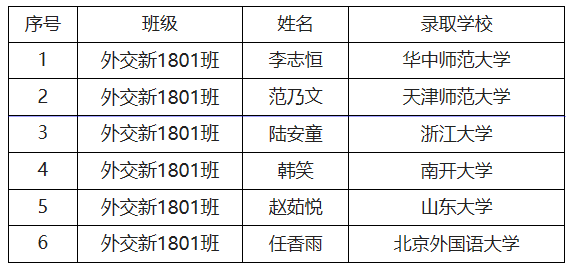 2018级学生创造佳绩,有14名学生顺利上岸。同时,我们与国际关系学院联合培养的外交卓越人才培养班也有6名同学被国内知名高校录取。