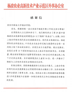 师生的大力支持和参与下,本届“农高会”顺利举办,其中包括2022上海合作组织现代农业发展圆桌会议、现代农业高端论坛、杨凌国际农业科技论坛、中非农业交流合作实践与展望研讨会等一系列活动,进一步推动了杨凌与上合组织各国农业领域务实合作,彰显了杨凌上合组织农业基地在推动上合组织国家和地区现代农业交流合作中的重要作用。
