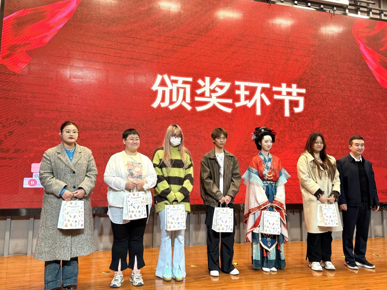 中场互动环节“看字母抢答单词”更是将现场气氛推向高潮,全场观众积极参与,问答妙趣横生,快乐的笑声阵阵响起。宁晶向答对的同学颁发奖品并合影留念。
