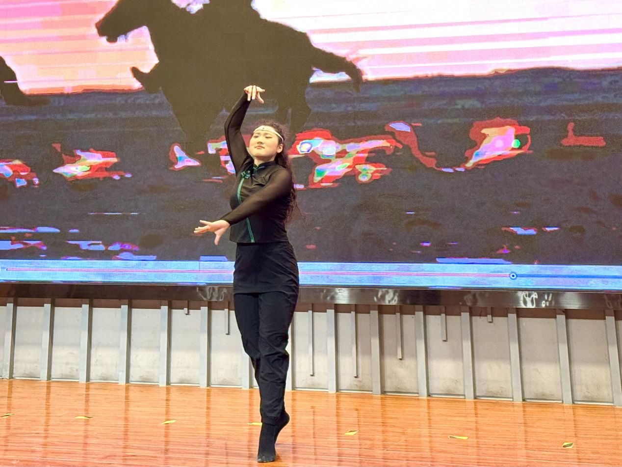 热情洋溢的开场舞蹈《Maniac》瞬间点燃了现场气氛,紧接着由塔吉克斯坦留学生带来中文独唱《男孩》,深情地演唱赢得了观众的热烈掌声。两位男生的吉他奏唱《喀秋莎》,优美的伴奏和歌声带大家领略了俄罗斯民谣的魅力,紧随其后的蒙古族舞蹈《黑马》,一下将在场的观众拉到热情广袤的大草原,感受无尽的豪迈与自由。精彩的表演不时掀起阵阵喝彩与掌声。