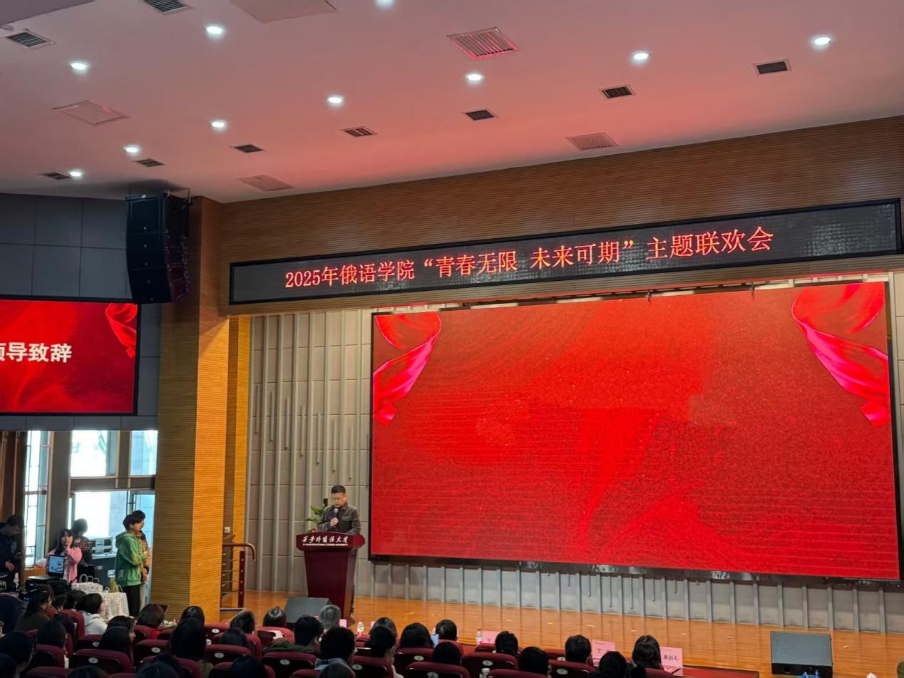 在JA111成功举办“青春无限,未来可期”迎春联欢会,此次活动由学院团委承办,设立“宁氏西外学生发展基金”的西安中欧创新技术有限公司支持举办。学院党委书记丁铭、副书记兼行政副院长董静、副院长康喆文、俄语和哈语专业教师代表、辅导员以及行政人员出席,活动还特别邀请了中欧创新技术有限公司总经理宁晶、副总经理李化、总经理助理王若曦来到现场与全体学生们同享视听盛宴。