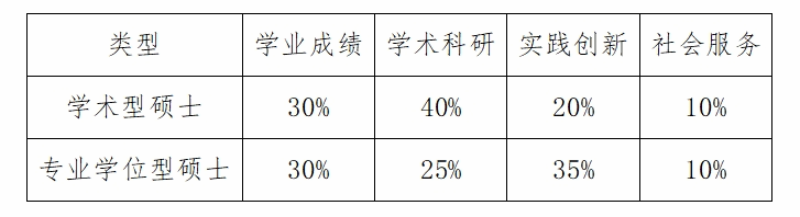 综合测评总成绩=学业成绩*权重+学术科研总分*权重+实践创新总分*权重+社会服务总分*权重。