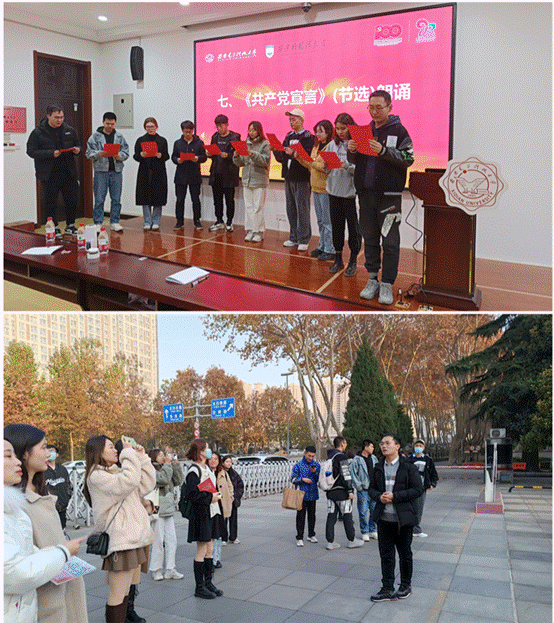 共诵经典,不负初心。双方支部互赠礼物后,活动气氛在中俄双语诵读《共产党宣言》中达到高潮,在铿锵誓言中走入尾声。中国共产党从星星之火形成燎原之势,带领我们祖国从积贫积弱走向大国崛起,殊为不易。知大国史,当知中国共产党为什么能;立报国志,当知如何让中国共产党继续行;强爱国情,当是爱国爱党,不忘初心;传强国音,当是从我做起,从身边小事做起。双方支部通过联合主题党日活动进一步领会全会精神,以期在实践中彰显党员担当,收获颇丰。