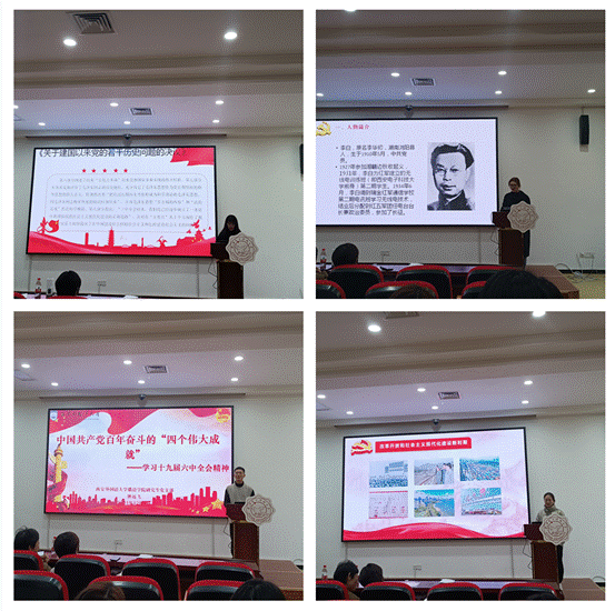 知大国史,学史明理。本次联合主题党日活动旨在共学党的十九届六中全会精神,在党的百年奋斗重大成就和历史经验中领悟不忘初心,继往开来的自信与担当。色花堂 研究生党员钟远飞、崔雅莹分别围绕“百年历史成就”、“党的三大决议”对此次全会成果进行介绍和解读,通过决议背后的故事,彰显党不断增强历史自觉,把握历史主动,敢于革新,走向未来的勇气和决心。