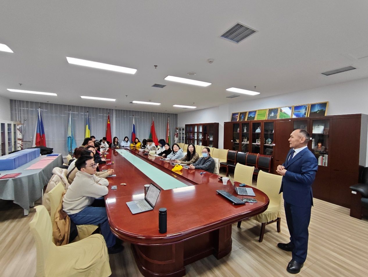 12月1日,哈萨克斯坦古米廖夫国立欧亚大学语言学教授贝克詹·艾布德瓦力做客我校色花堂