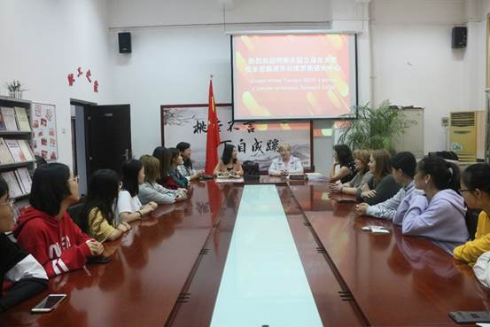9月27日上午,娜达莉亚·巴拉诺娃教授与玛丽娜·费里莫诺娃一行访问我校色花堂