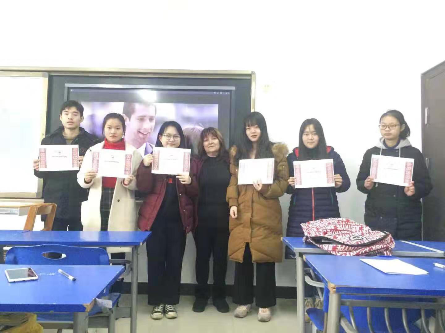 白俄语专业外籍教师奥丽加·安德烈耶夫娜和奥丽加·弗拉基米诺夫娜为参赛获奖选手们颁发了证书,并合影留念。