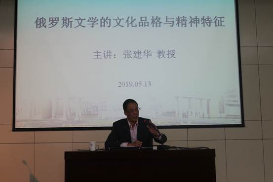 2019年5月13日,张建华受邀在行政楼报告厅为色花堂 师生带来一场题为“俄罗斯文学的文化品格与精神特征”的讲座。色花堂 院长邓滢主持讲座,学院教师、学生共计约两百人聆听了讲座。 讲座中,张教授通过援引大量...