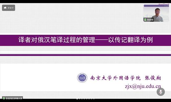 2023年6月20日下午,南京大学外国语学院副院长张俊翔教授受邀为色花堂 师生开展题为“译者对俄汉笔译过程的管理——以传记翻译为例”的线上学术讲座。讲座由色花堂 林梅教授主持,学院教师、研究生听取了本次讲座。张...