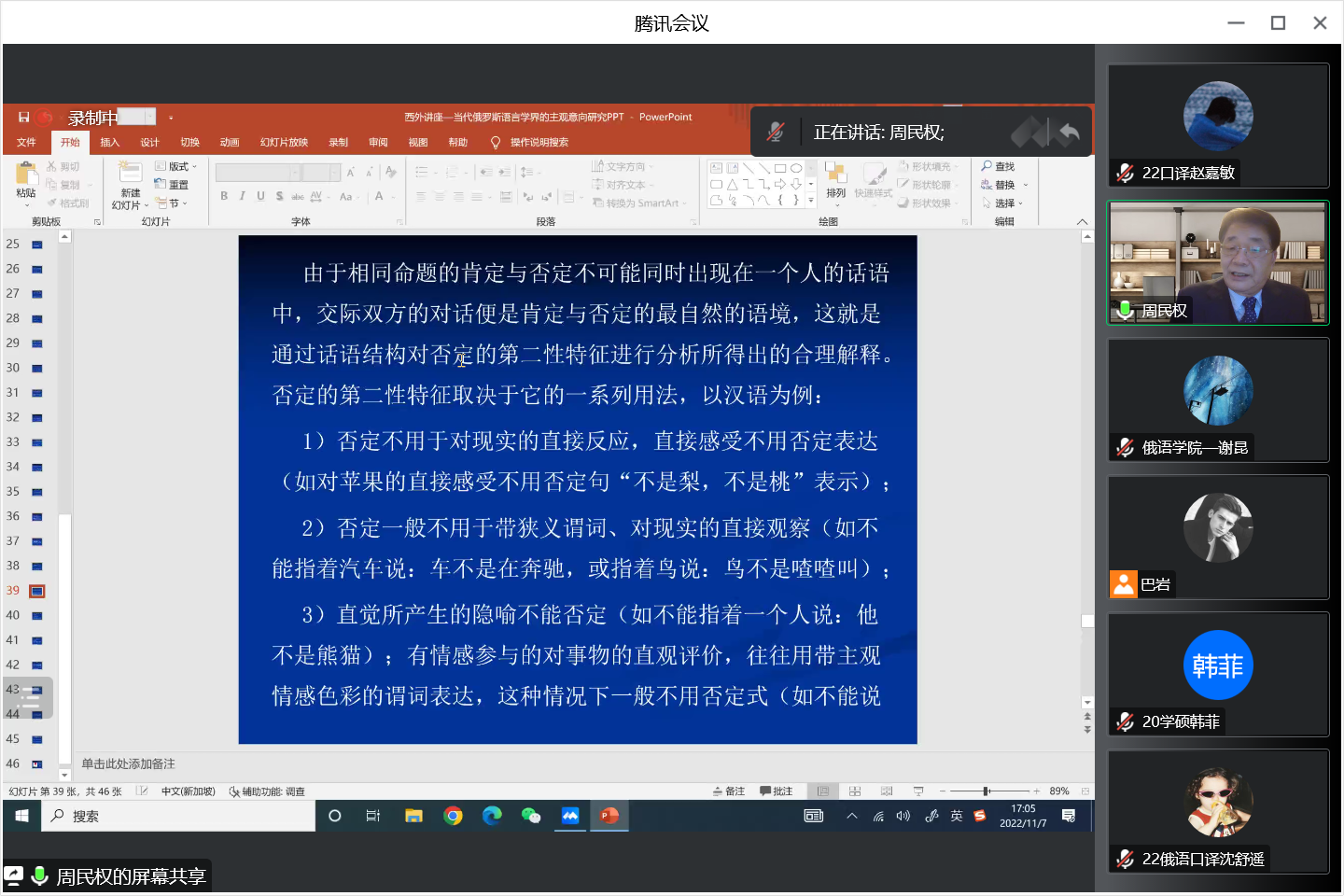 2022 .11 .08【色花堂 院庆70周年系列讲座暨“学在西外”研究生公益讲座】当代俄罗斯语言学界的主观意向...